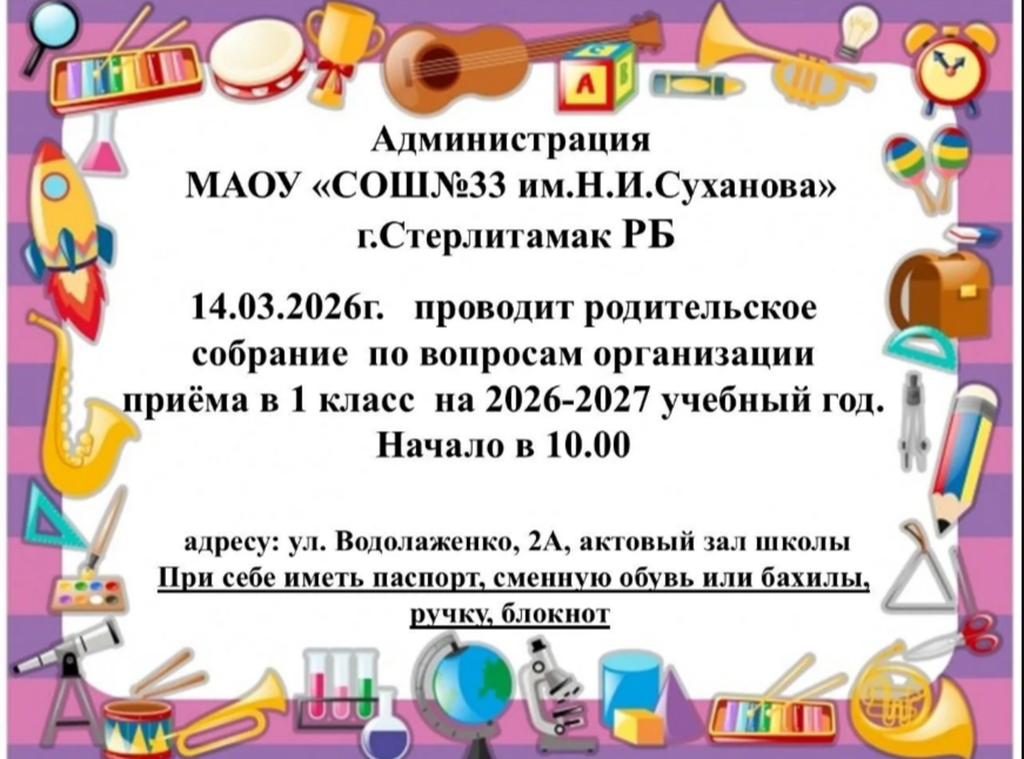 Муниципальное автономное общеобразовательное учреждение «Средняя общеобразовательная школа № 33имени Суханова Николая Ивановича»городского округа город СтерлитамакРеспублики Башкортостан